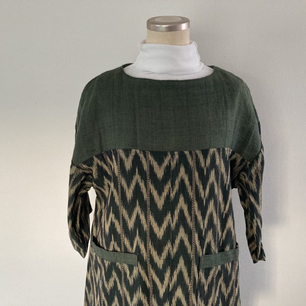 品名グアテマラ絣厚地綿、丸首七分袖チュニック