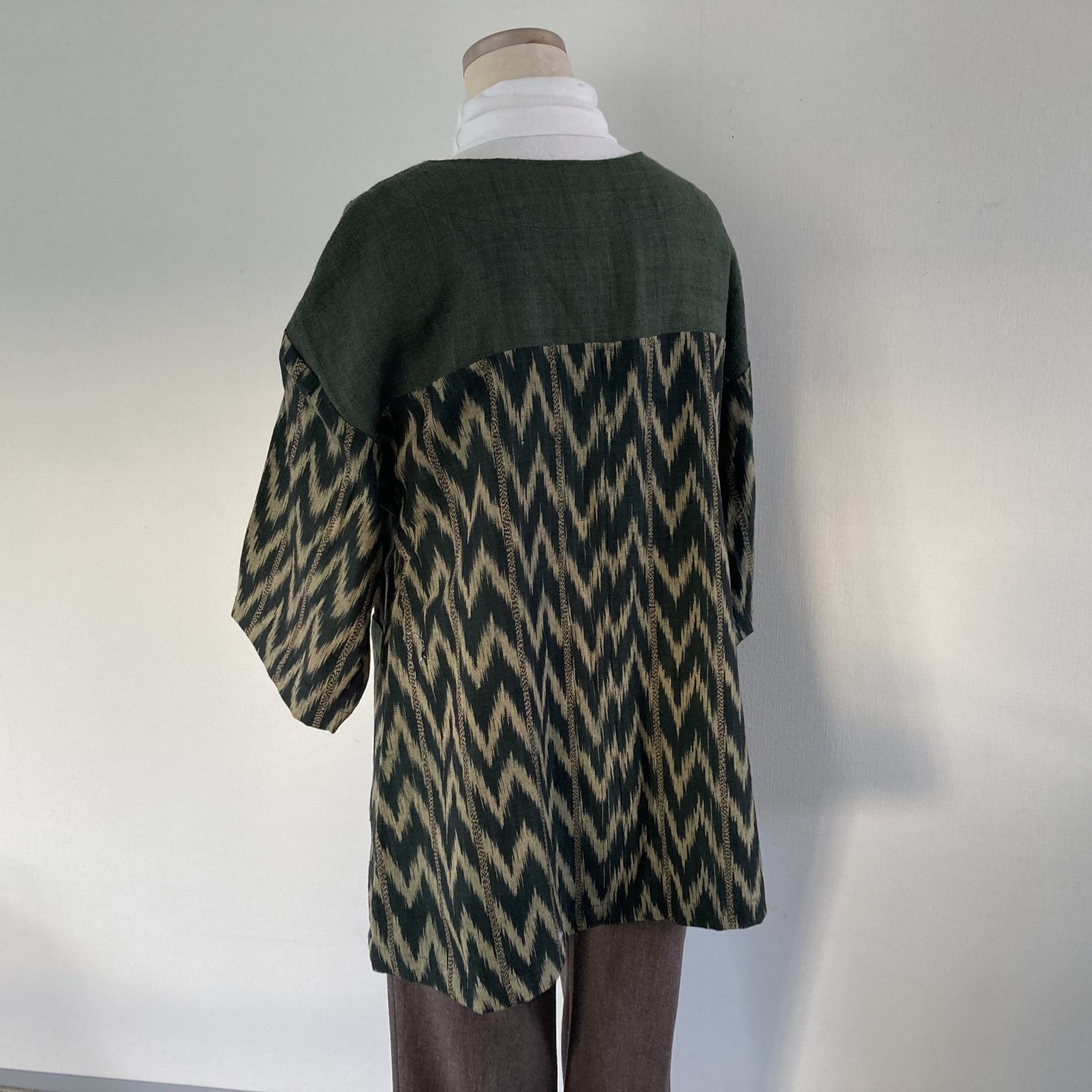 グアテマラ絣厚地綿、丸首七分袖チュニック